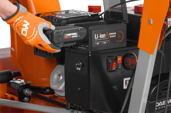 Для комфортной работы на холоде все снегоуборщики серии Expert Line снабжены подогревом рукояток. Включение и выключение размещено прямо на панели.