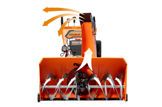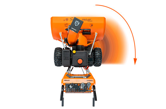 Изменение угла выброса на 180 градусов дает возможность мгновенно изменять направление и дальность выброса снега непосредственно с панели оператора.